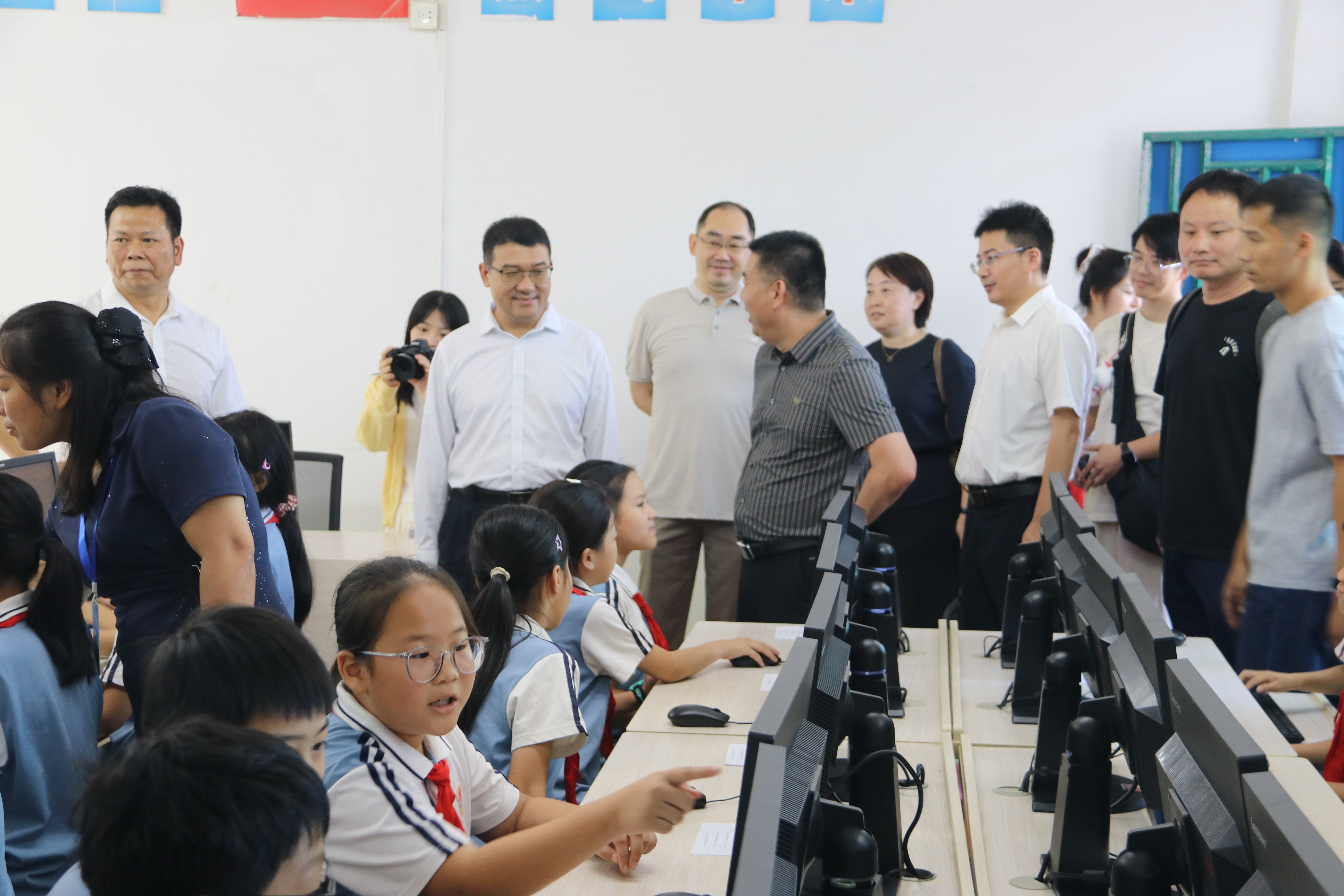 党组书记贾鹏代表陆河县教育局对村田集团华南区四家公司和广东省教育基金会的到来表示热烈的欢迎和衷心的感谢。他说,村田集团华南区四家公司捐赠的41套性能优良的教学设备不是冰冷的机器,而是承载着企业社会责任与人间大爱的教育利器。在信息化教学快速发展的当下,它们将为陆河县新田镇中心小学的师生们打开探索知识的新窗口,助力课堂教学突破时空界限,为学生的全面发展注入新动能。广东省教育基金会作为公益桥梁,始终心系基层教育需求,积极牵线搭桥,推动优质资源向教育薄弱地区倾斜,这份对教育事业的坚守与付出,值得我们致以崇高的敬意!